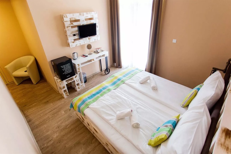 Kétágyas szobáink a Sissi épületben franciaágyasak, Anastasia épületben találhatóak különágyas elrendezésűek.